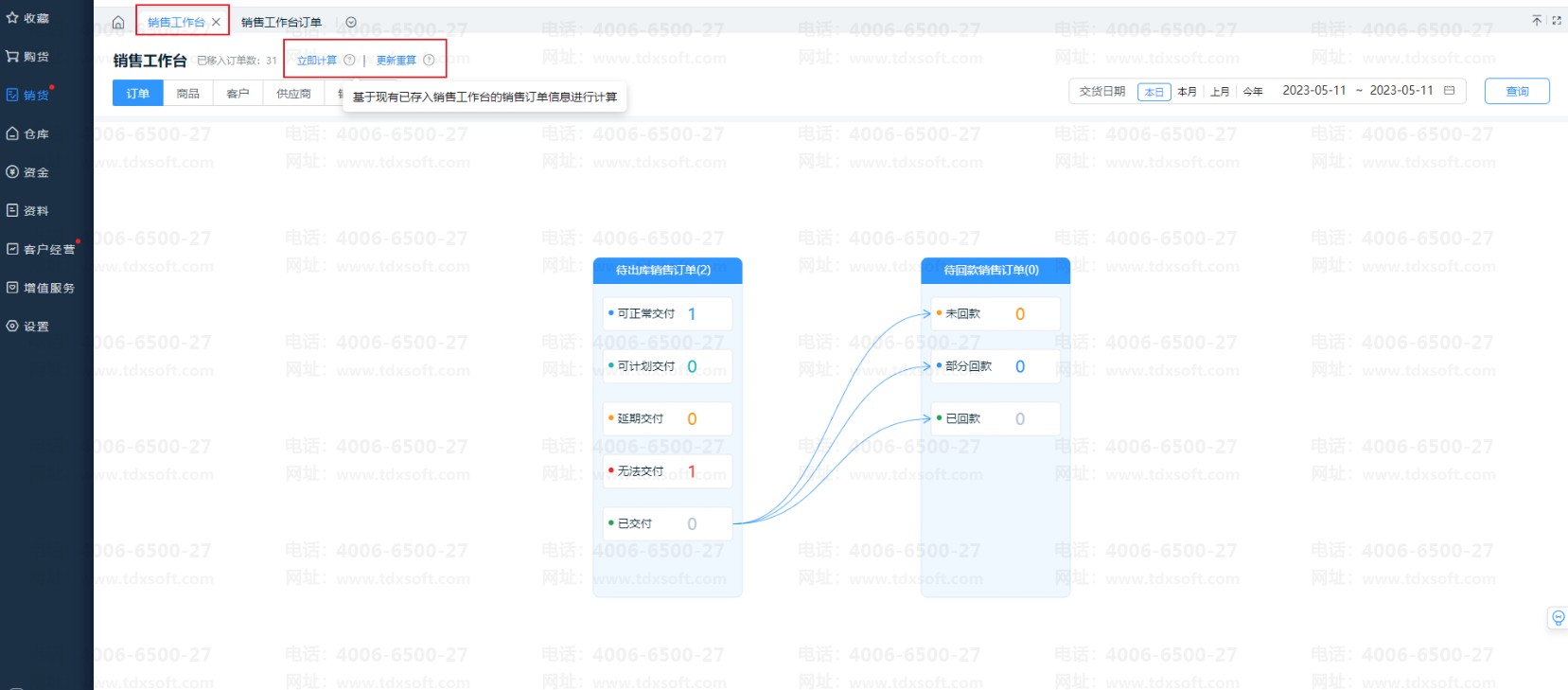 立即计算:基于现有已存入销售工作台的销售订单信息进行计算