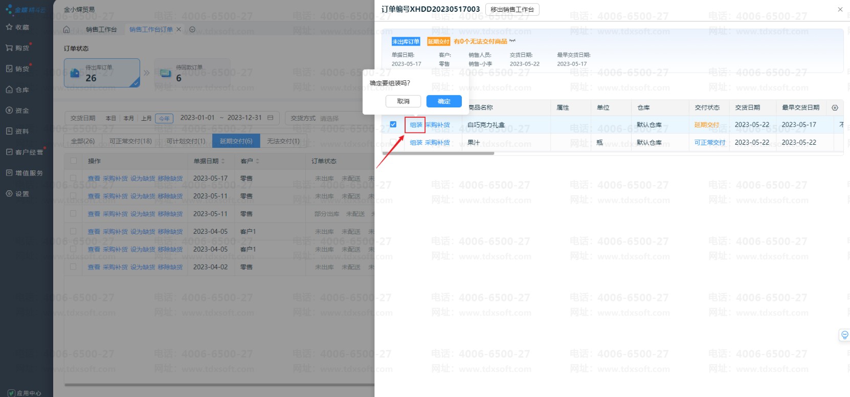 点击【组装】,自动创建组装订单