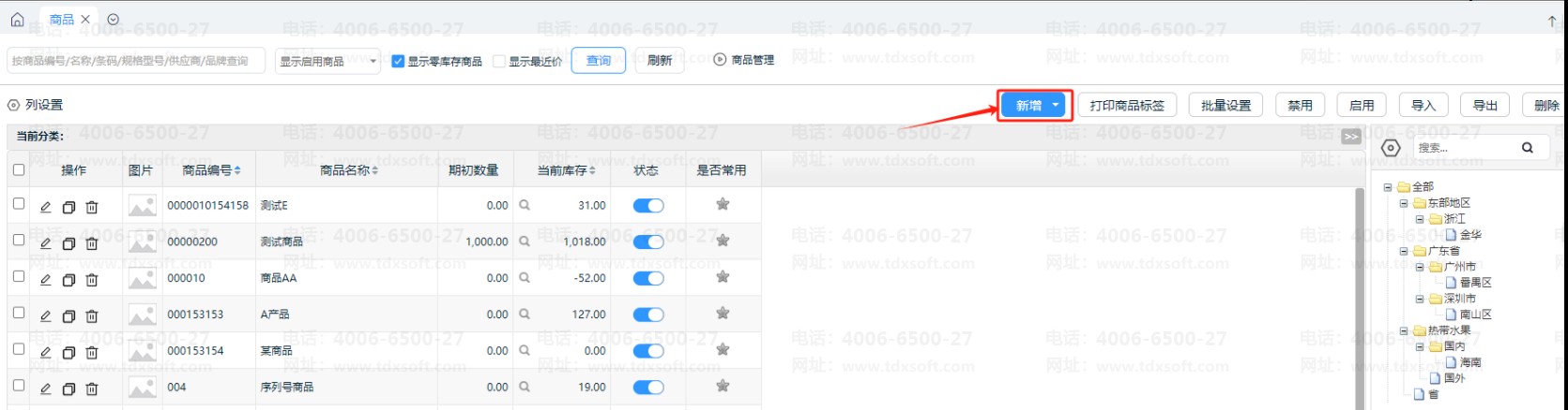 在商品列表界面点击右上角的【新增】按钮,可手动新增