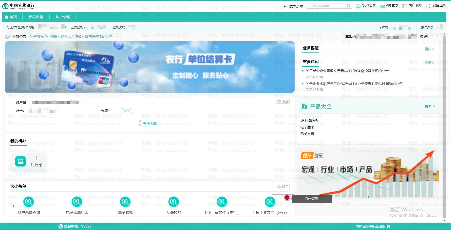 ①让客户登录:农业银行企业网银登录链接为:企业网银