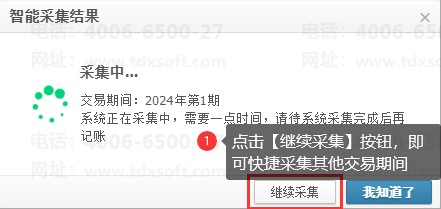 点击确定提交采集后,您可点击【继续采集】按钮,或是在发起采集后重新进入,选择其他期间进行采集,此操作不影响此前的采集任务进度和结果。