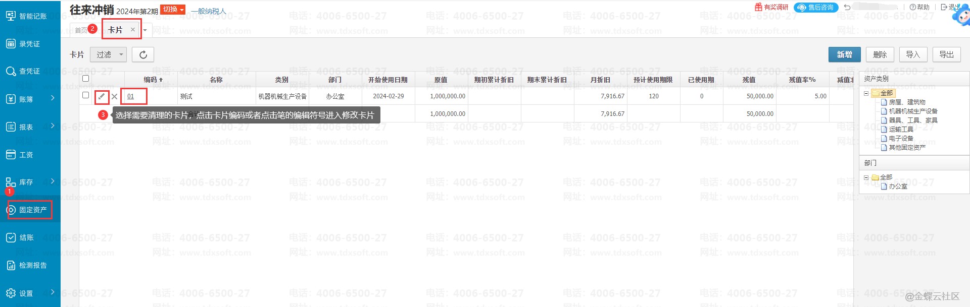 注:卡片清理的当期系统还会自动折旧,从下一期开始不再折旧