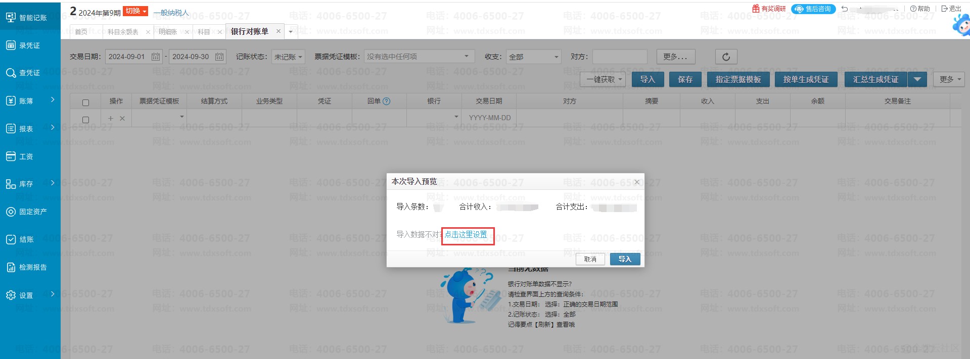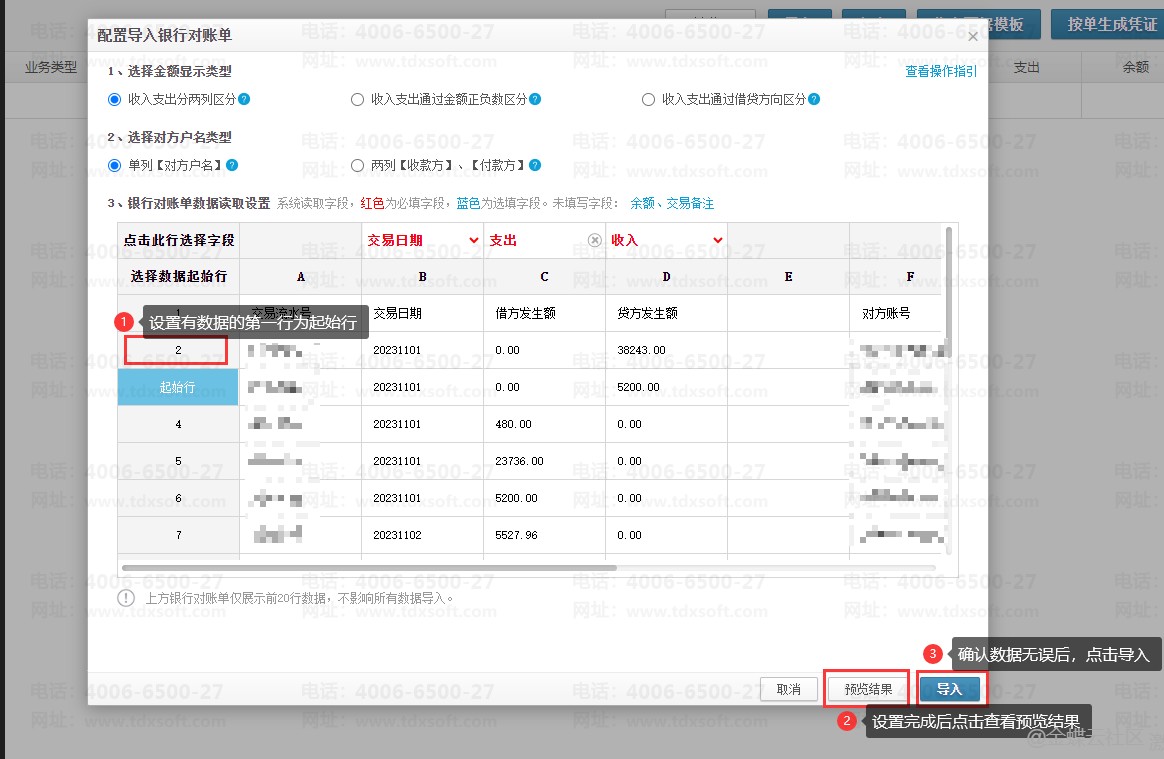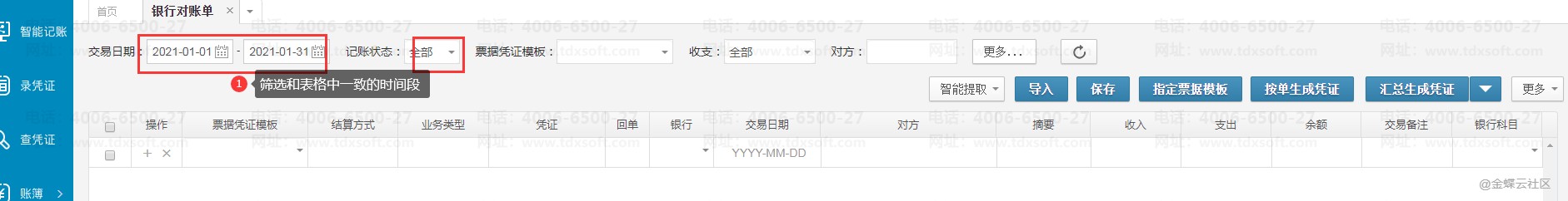 1.先确定导入表格中的发票开票日期/银行交易日期,对照检查系统中筛选的日期是否是对应的日期;