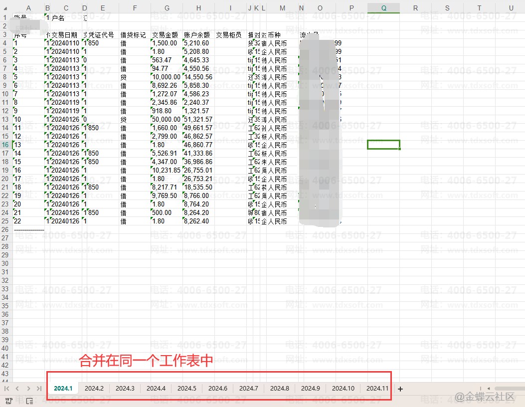 3、检查下导入文件是否存在多个工作表,系统只能导入第一个工作表的数据。有多个需要合并在同一个工作表中再导入账无忧系统。比如同一个Excel文件存在2024.1-2024.10的工作表,那么导入时只能导入2024.1的,即第一个工作表22条数据。