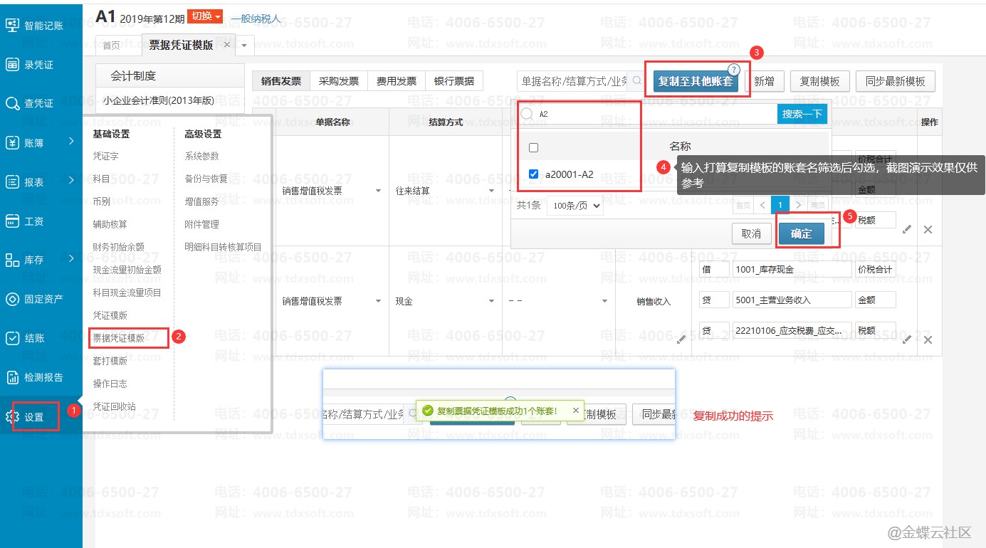【举例说明】比如A1账套已经设置好了票据凭证模板,A2账套也想和A1账套模板设置一样,如何快速的复制呢?
