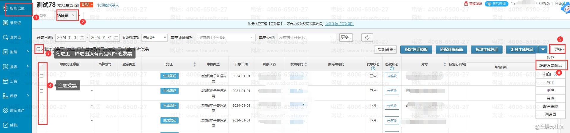 注:专票获取商品明细的四要素为:开票日期、发票代码、发票号码、不含税金额;普票获取商品明细的四要素为:开票日期、发票代码、发票号码、校验码后六位;全电发票获取商品的要素为:开票日期、发票号码、价税合计