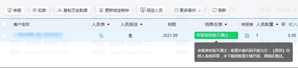 个税申报返回提示申报表校验不通过,【原因】自然人系统异常,未下载到街道乡镇代码,请稍后重试