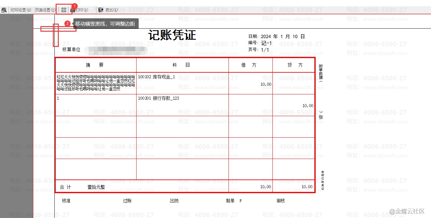 3.如果打印出来的效果有所偏移,可在打印预览界面,左上角点“#”图标,拉动横竖黑线,即可调整边距到合适的效果。