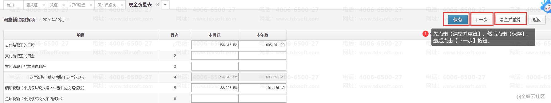 2.先点击【清空并重算】,然后点击【保存】按钮,最后再点击【下一步】;