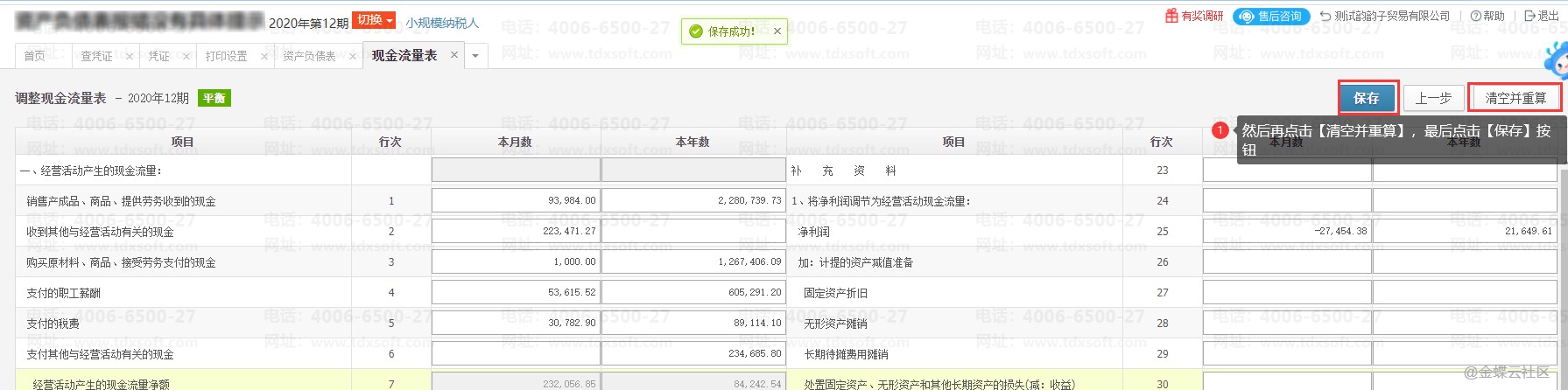 3.然后再操作一次【清空并重算】,再点击【保存】按钮即可查看数据。