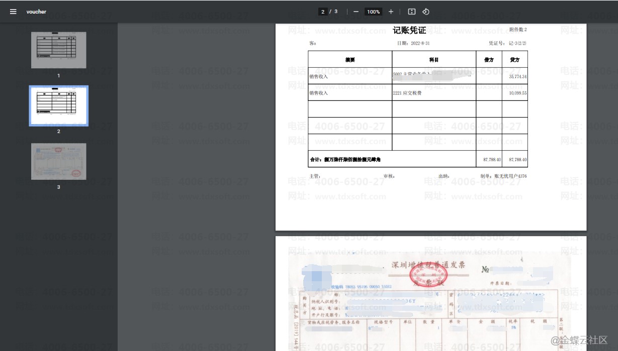 步骤二:点击PDF打印,勾选上【电子票样】/【纸质发票】/【票据附件】,再点击【打印】按钮在打印预览界面可以看到凭证和附件,继续操作打印即可。