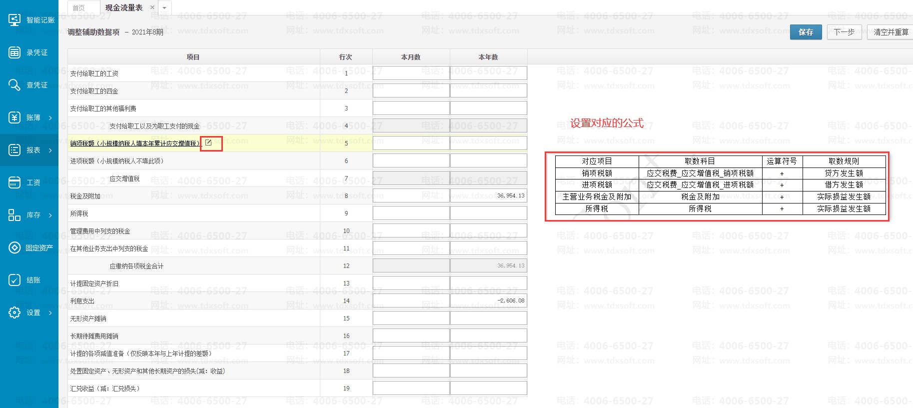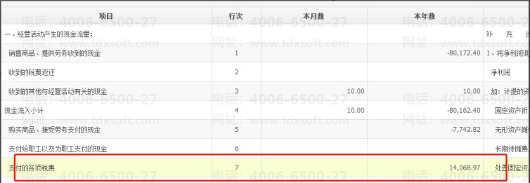 现金流量表中【支付的税费】项系统自动核算的金额为负数与实际不相符