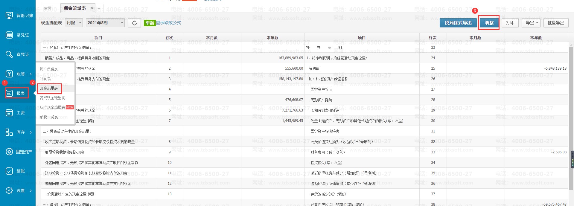 1、点击现金浏览表右上角的【调整】按钮进入表外编辑界面