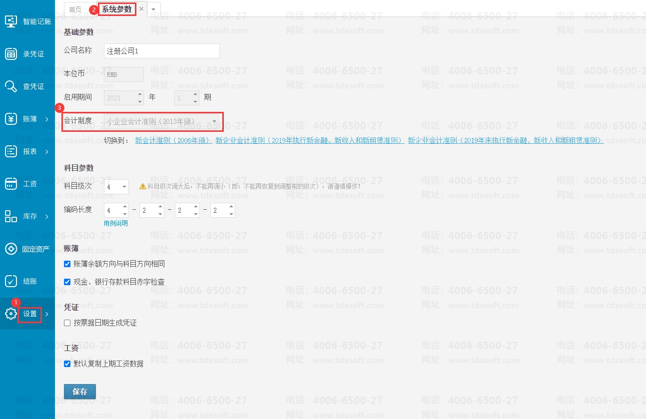 点【设置】 -- 【高级设置】下的【系统参数】检查您的会计制度是否为“新企业会计准则(2019年执行新金融、新收入和新租赁准则)”