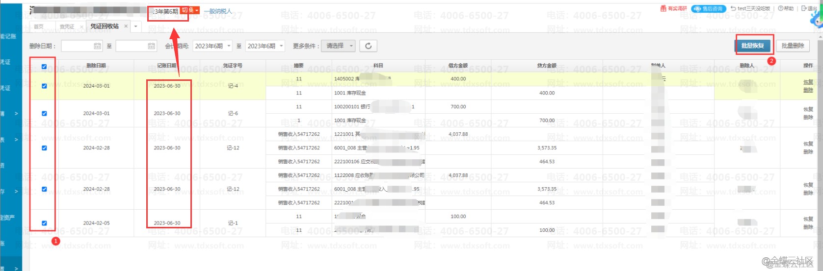 (注意:如若当前账期是6月,只能进行恢复6月的凭证,如果要恢复5月凭证,需要反结账到对应期间去进行恢复。)