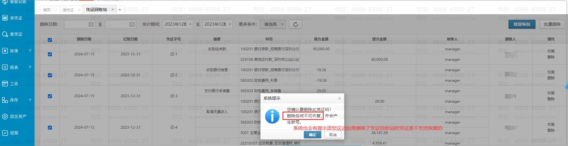 账无忧凭证回收站删除的凭证还支持恢复吗