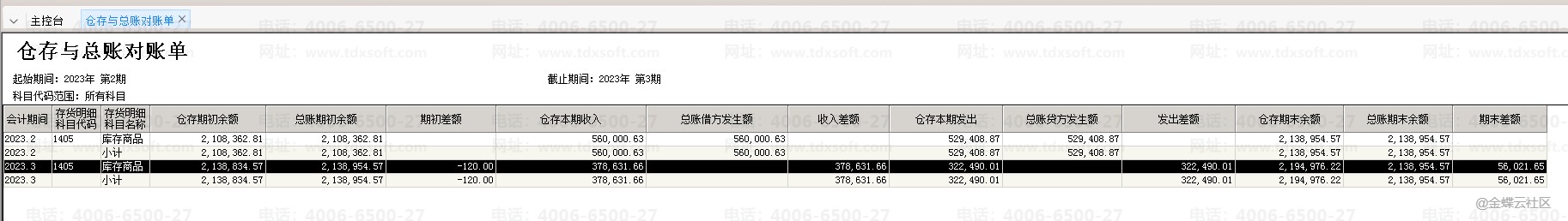 旗舰版经常会出现仓存与总账对账不平的情况,一般是上期期末平了,结账到下期后,期初余额就不平