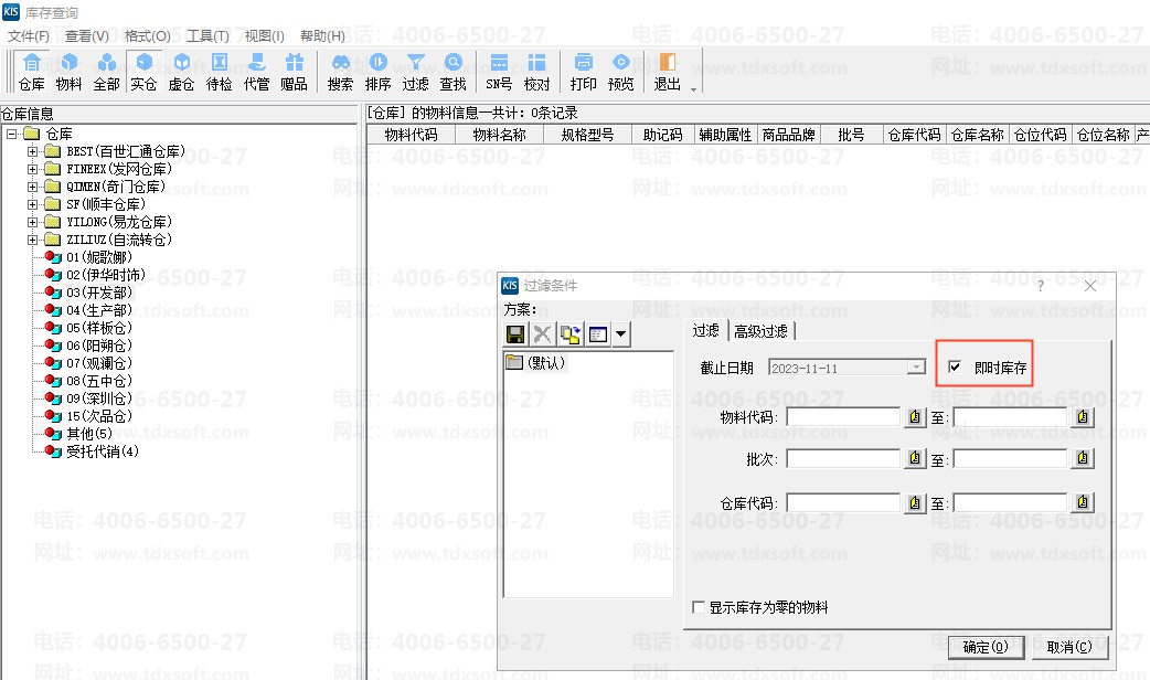 2、物料收发明细表除了日期范围控制以外,还可以检查一下过滤条件参数。