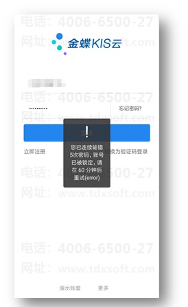 APP或者小程序,账号密码每输错1次,将会给出相应的提示,连续输错5次后,将会被锁定1小时无法使用,一旦锁定,即便是输入了正确的密码也不能登录,必须等1个小时之后才能进入APP使用。