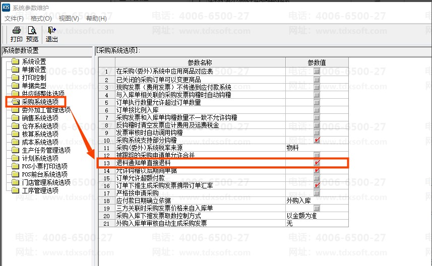 (1)在系统设置-采购系统选项中勾选参数【退料通知单直接退料】