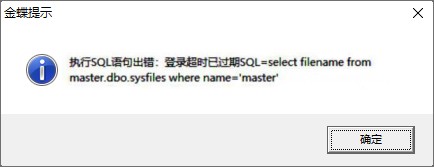 执行SQL语句出错:登录超时已过期SQL = select filename from master.dbo.sysfiles where name = 'master'。