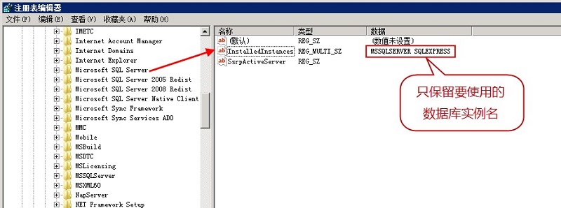 2、检查注册表中对应的实例名是否为使用的数据库实例,注册表路径如下: