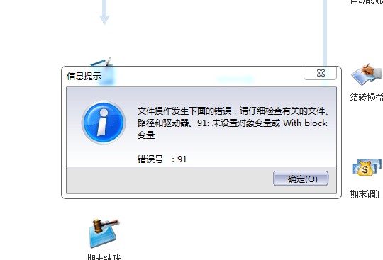 金蝶无法结账,文件操作发生下面错误,91未设置变量或with block,如下: