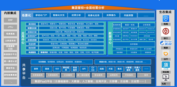 -生态系统平台:链接多家外部系统,涉及税务、司库、商旅等多个生态系统平台;