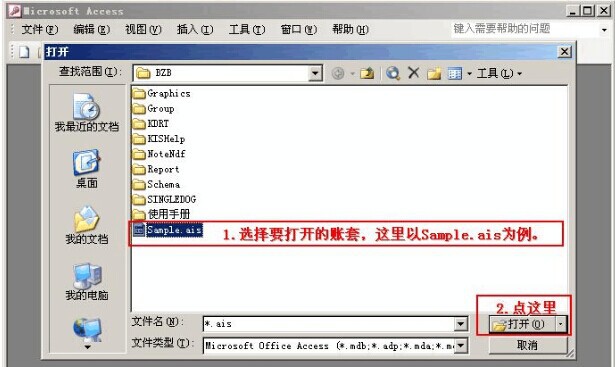 选择要打开的账套,这里以Sample.ais为例,选中后点打开。