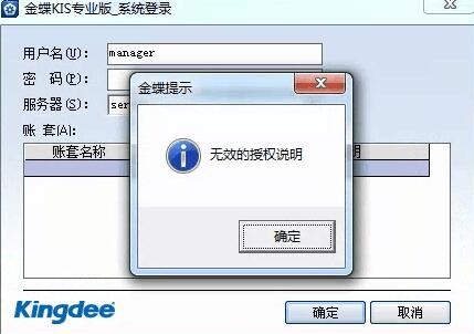 金蝶KIS专业版V15.0服务器连不上,提示无效的授权说明