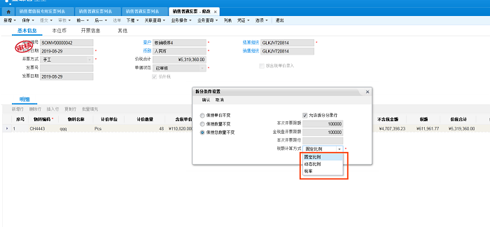 1、固定比例(目前系统默认方式):拆分行税额=发票总税额*(拆分行不含税金额/发票不含税金额总额),最后一张金税单税额=发票总税额-之前已拆分金税单税额之和。