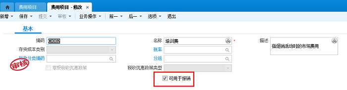费用报销模块需要用到的费用项目,在费用项目处勾选“可用于报销”。