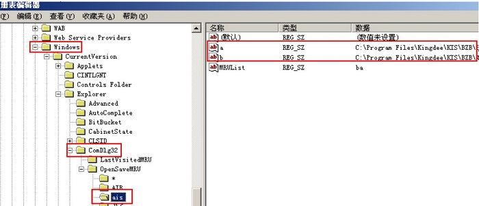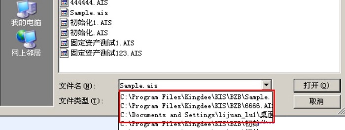 账套打开信息保存在注册表HKEY_USER/Software/Microsoft/Windows/ ComDlg32/OpenSaveMRU在OpenSaveMRU\AIS下,就是最近打开过的AIS的文件列表,把除MRUList和默认以外的值删除