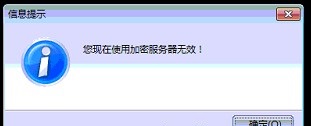 最诡异的还是,打开软件会打开那个连接加密服务器的小窗口,客户一旦勾上以后不再显示此界面,遭搞了。一旦没连上,就会提示“您现在使用加密服务器无效!”,然后确定,就没反应,再打开系统,又出现这个提示。