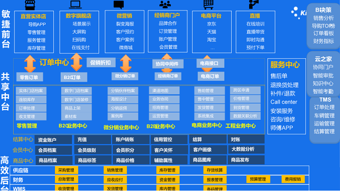 企业资源得到了统一管理和分配,企业内部业务运营能力得到高效提升,以前各个系统都是独立运行,线上和线下业务系统也是没有对接的,这次基于统一的平台进行来规划,统一由金蝶公司来在统一的金蝶云平台上进行建设,从业务财务闭环的思路去进行设计和实施,彻底消除信息孤岛,使得各渠道和各系统的数据互通,建设多组织销售协同体系,具备良好的拓展性,来支撑未来业务的快速发展;