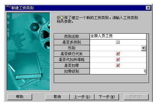 1.通过类别向导新建工资类别,类别名称可定义为全部人员工资,输入相关的参数时要注意选择,如果不是做多类别的工资汇总,请不要选择多类别。