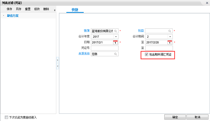 总账期末调汇后会生成汇兑损益的凭证,在【出纳管理】→【手工日记账】→【复核记账】过滤界面勾选“包含期末调汇凭证”,即可将期末调汇的凭证引入日记账,使出纳系统与总账中外币存款对应的本位币金额一致。