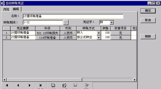 自转账系统是为用户提供的制作各种自动填写常用固定凭证的工具,也档当于辅助转账功能,自动转账功能用于自动生成可按比例转出指定科目的“发生额”、“余额”、“最新发生额”、“最新余额”等项数值的会计业务。