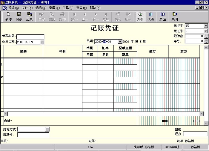 制单人请在中间“日期”处理调整制单位日期为:2000-5-1