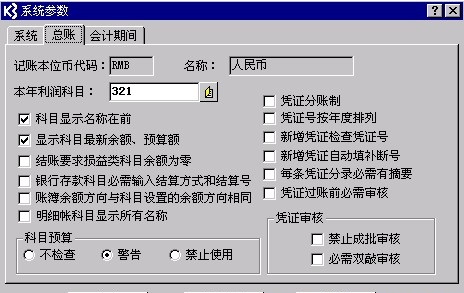 在总账日常凭证数据录入前,需要用户对凭证录入过程中一些功能进行设置,完成这一操作后,才能更方便、更快捷实现您的日常工作效率。首先进入总账系统-[主窗口]中的“维护”,单击“系统参数”中“总账”标签页,如下图: