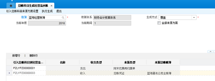 未勾选:需要收到选择需要生成经营流水账的引入总账科目方案设置。