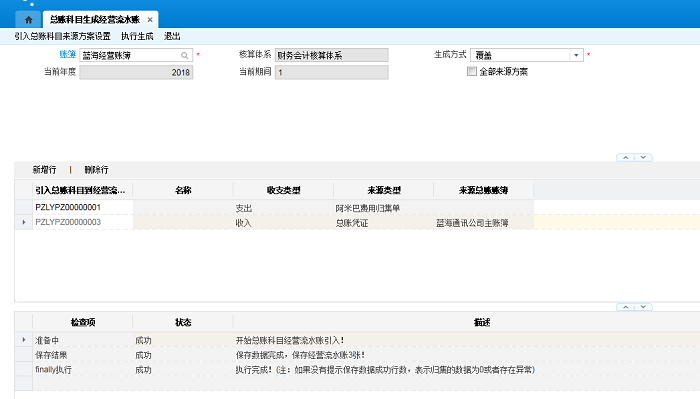 覆盖:是根据引入总账科目方案设置的分录内码直接删除掉已经生成的经营流水账(经营账簿对应的当前期间范围内)。