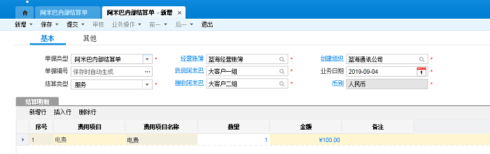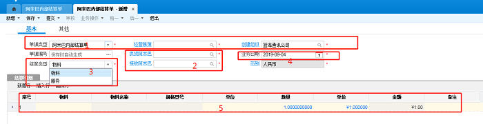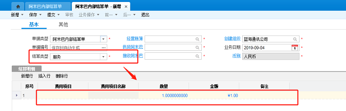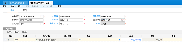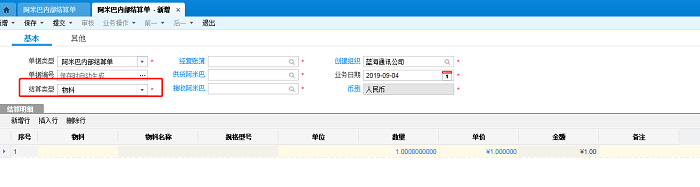 1.结算类型是物料时,关于金额可以直接取阿米巴内部结算单分录上的金额,也可以直接取单价*数量算出。如下图