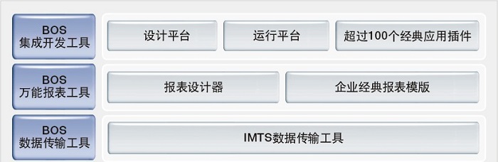 金蝶K/3 BOS包括BOS集成开发工具、BOS万能报表工具和BOS数据传输工具等企业业务集成开发与配置工具。