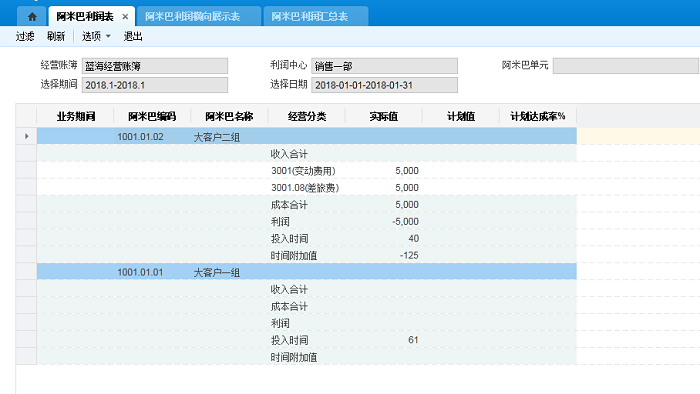 注:阿米巴计划单是以期间为单位,并不支持按日期设置计划,因此如果自定义日期内的阿米巴计划单,是寻找这个自定义日期内所有期间的阿米巴计划值汇总。