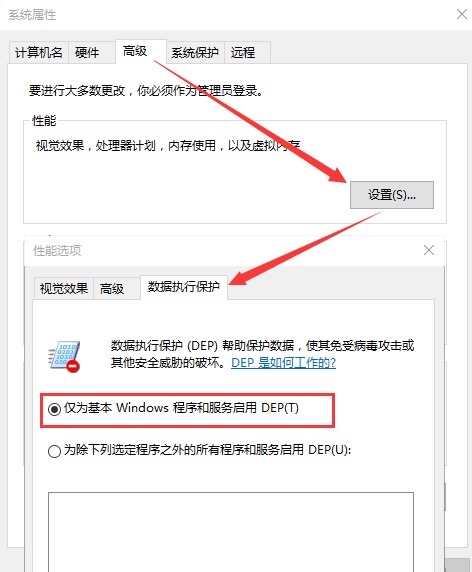 请确保电脑的数据执行保护为关闭状态: win键+R键调出“运行”对话框,输入sysdm.cpl→确定→高级→第一个设置按钮→数据执行保护,选中“仅为基本windows程序和服务启用DEP”确定,重启电脑。