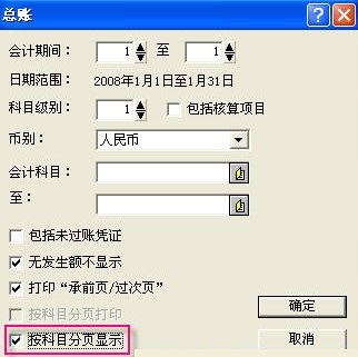 在查询金蝶KIS迷你版总账时能不能实现每个科目分页独立显示?