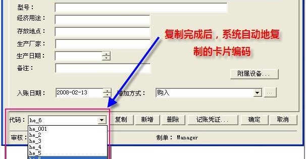 并且系统将自动为每张卡片自动添加卡片代码。如果预设编号不符合用户需要,用户可以根据自己的编码规则,只需要简单地逐一修改一下每张卡片上的固定资产卡片编码即可。