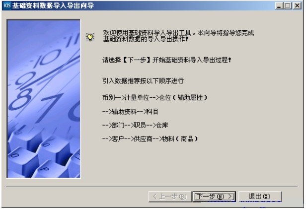 2、登录后打开数据交换平台界面。点击交换对象下的【基础资料】,再点击【新建任务】,调出基础资料导入导出向导界面。根据该向导可以导入导出基础资料。