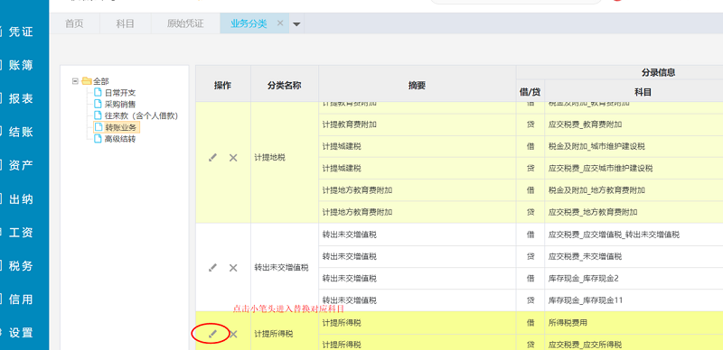 如果该模板还要生成凭证的,更换模板里面的科目即可,如下图操作:
